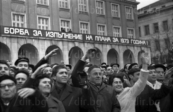 Хората ликуват от присъствието на Първия, дошъл в града при тях. Издигнати са лозунги, които зоват за "Борба за изпълнение на плана за 1973 година".
