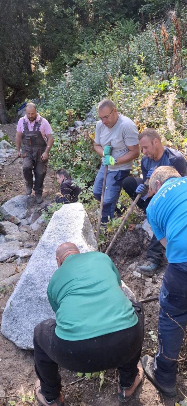 Подновяване на маркировката по маршрута и почистване на трасето от паднали дървета и камъни, заедно с местните доброволци.
