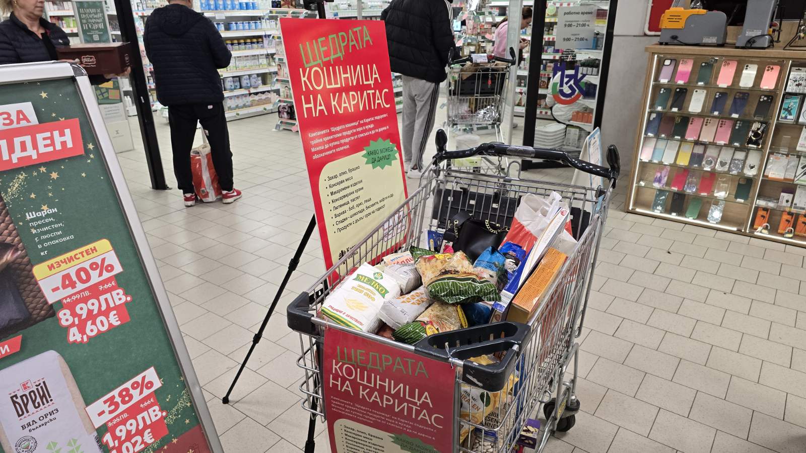 В обектите ще бъдат разположени специални колички за дарения под надслов „Щедрата кошница“, като продукти могат да се оставят в часовия диапазон 10:00 – 20:00 ч.